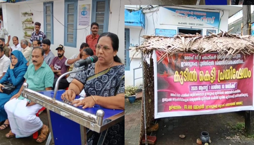 ലൈഫ് ഭവന പദ്ധതികൾ അട്ടിമറിക്കപ്പെടുന്ന ഈരാറ്റുപേട്ട മുനിസിപ്പൽ ഭരണസമിതിക്കെതിരെ ഇടതുപക്ഷ ജനപ്രതിനിധികളുടെ നേതൃത്വത്തിൽ കുടിൽ കെട്ടി പ്രതിഷേധിച്ചു