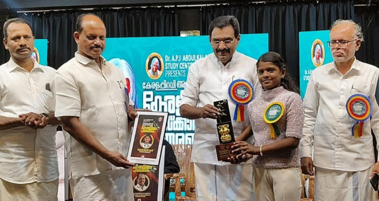 ഡോക്ടർ എ പി ജെ അബ്ദുൾകലാം സ്റ്റഡിസെന്റർ കേരളപിറവി ആഘോഷങ്ങളുടെ ഭാഗമായി സമസ്ത മേഖലകളിൽ മികവ് തെളിയച്ചവർക്കായി ഏർപ്പെടുത്തിയ കേരളീയം പുരസ്കാരം ഇരുകൈകളും ബന്ധിച്ച് വേമ്പനാട്ട്കായൽ നീന്തികയറി വേൾഡ് വൈഡ് ബുക്ക് ഓഫ് റെക്കോർഡ്സ് ഇന്ത്യൻ ബുക്ക് ഓഫ് റെക്കോർഡ്സ് എലൈറ്റ് ബുക്ക് ഓഫ് റെക്കോഡ്സ് എന്നീ മൂന്ന് റെക്കോർഡുകൾ കരസ്തമാക്കിയ പത്തുവയസുകാരി സൂര്യഗായത്രി ആന്റോ ആന്റണി MP യിൽ നിന്നും ഏറ്റുവാങ്ങി. തിരുവനന്തപുരം വൈലോപ്പിള്ളി സംസ്കൃതി ഭവനിൽ വച്ച് നടന്ന വർണ്ണാഭമായ ചങ്ങ് തൊഴിൽ, വിദ്യാഭ്യാസ Read More…