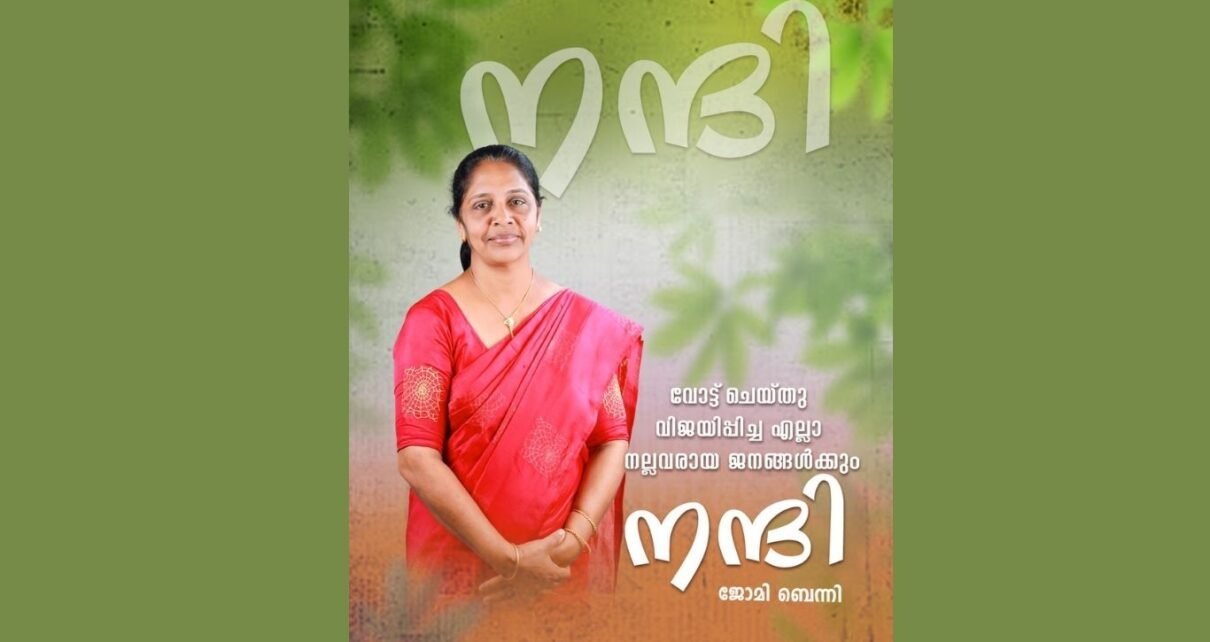 തലപ്പലം ഗ്രാമപഞ്ചായത്തിലെ കളത്തൂക്കടവ് വാർഡിന്റെ ജനപ്രതിനിധിയായ് തുടർച്ചയായ് രണ്ടാം തവണയും ജോമി ബെന്നി കൊച്ചെട്ടൊന്നിൽ തെരെഞ്ഞെടുക്കപ്പെട്ടു. 25 വർഷത്തോളം കേരള കോൺഗ്രസ് മാണി വിഭാഗമാണ് ഈ വാർഡിൽ യുഡിഫ് ന് വേണ്ടി മത്സരിച്ചിരുന്നത്. ജോസ് കെ മാണിയും പാർട്ടിയും ഇടത് പക്ഷത്തേയ്ക്ക് ചേക്കേറിയതിനാൽ 2020 ൽ നടന്ന തെരഞ്ഞെടുപ്പിൽ കോൺഗ്രസിന് വേണ്ടി മത്സരിക്കാൻ നിയോഗിക്കപ്പെട്ടത് ജോമി ബെന്നി ആയിരുന്നു. പൊതുപ്രവർത്തന രംഗത്ത് ആദ്യമാണെങ്കിലും നാട്ടുകാർകാർക്കെല്ലാം പ്രിയപ്പെട്ടവരായിരുന്നു കൊച്ചെട്ടൊന്നിൽ കുടുംബം. ആദ്യ തെരഞ്ഞെടുപ്പിൽ മാണി വിഭാഗത്തിന്റെ ശക്തയായ വനിതാ Read More…