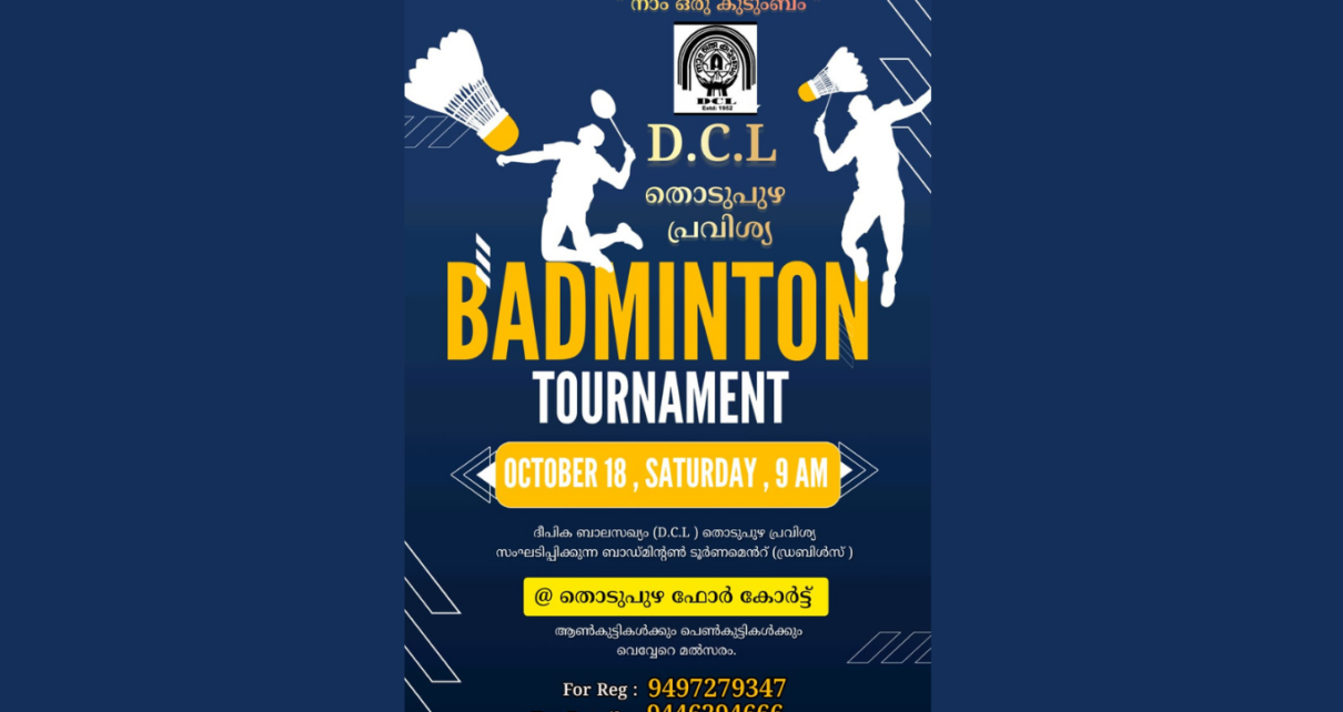 തൊടുപുഴ : ഡി.സി.എൽ സംഘടിപ്പിക്കുന്ന സംസ്ഥാന ബാഡ്മിന്റൺ ടൂർണമെന്റിന്റെ (ഡബിൾസ്) തൊടുപുഴ പ്രവിശ്യാതല മത്സരം ഒക്ടോബർ 18 ശനിയാഴ്ച രാവിലെ 9 മുതൽ തൊടുപുഴ ബാഡ്മിൻറൺ ഫോർ കോർട്ടിൽ നടക്കും. പ്രവിശ്യയിലെ സ്കൂളുകളിൽ പത്ത് വരെ ക്ലാസുകളിൽ പഠിക്കുന്നവർക്ക് പങ്കെടുക്കാം. ആൺകുട്ടികൾക്കും പെൺകുട്ടികൾക്കും വെവ്വേറെയാണ് മത്സരം. ഒരു സ്കൂളിൽനിന്ന് ഓരോ വിഭാഗത്തിലും ഓരോ ടീമിനു വീതം പങ്കെടുക്കാം . ഒന്നും രണ്ടും മൂന്നും സ്ഥാനക്കാർക്ക് ട്രോഫിയും സർട്ടിഫിക്കറ്റും പങ്കെടുക്കുന്ന മറ്റുള്ളവർക്ക് മെമൻ റ്റോകളും സമ്മാനിക്കും . ഒന്നാം Read More…