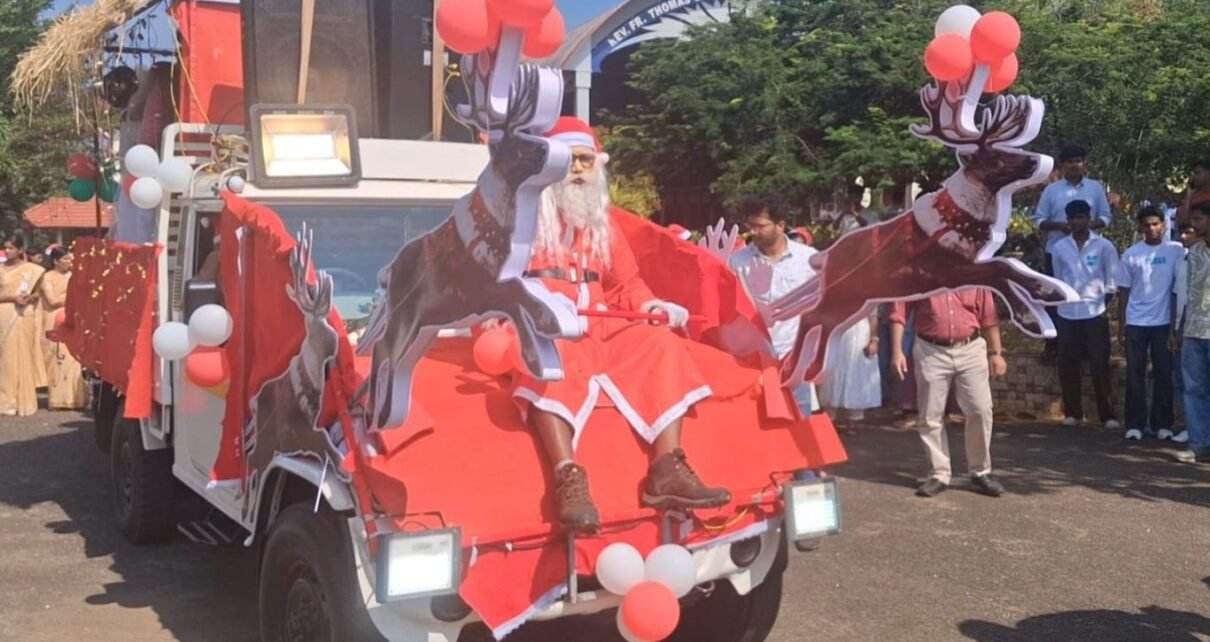 അരുവിത്തുറ :ക്രിസ്മസിന്റെ വരവ് അറിയിച്ച് അരുവിത്തുറ സെൻറ് ജോർജ് കോളേജിൽ ബോൺ നത്താലെ -2025 ക്രിസ്മസ് ആഘോഷങ്ങൾ സംഘടിപ്പിച്ചു.വർണ്ണശബളമായ ക്രിസ്മസ് കരോളോടെ ആരംഭിച്ച ആഘോഷങ്ങളിൽ ക്രിസ്മസ് പാപ്പാ മത്സരം ക്രിസ്മസ് കരോൾ ഗാന മത്സരം കുട്ടികളുടെ വിവിധ കലാപരിപാടികൾ ,ഡിജെ തുടങ്ങിയ പരിപാടികൾ കോർത്തിണക്കിയിരുന്നു. ചടങ്ങിൽ കോളേജിൽ പ്രിൻസിപ്പൽ പ്രൊഫ. ഡോ സിബി ജോസഫ്,കോളേജ് ബർസാർ റവ ഫാ ബിജു കുന്നയ്ക്കാട്ട്,വൈസ് പ്രിൻസിപ്പൽ ഡോ ജിലു ആനി ജോൺ തുടങ്ങിയവർ വിദ്യാർത്ഥികൾക്ക് സന്ദേശം നൽകി.