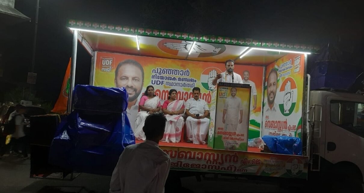 പൂഞ്ഞാർ തെക്കേക്കരയിൽ ആവേശം വിതറി യു.ഡി.എഫ് സാരഥി അഡ്വ. എം. ജെ സെബാസ്റ്റ്യൻ്റെ മണ്ഡല പര്യടനം