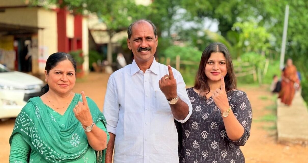 മുത്തോലി പഞ്ചായത്ത് 134-ാം നമ്പർ ബൂത്തായ പുലിയന്നൂർ ഗവഃ ആശ്രമം എൽപി സ്കൂളിൽ അഡ്വ. ഷോൺ ജോർജ് ഭാര്യ പാർവ്വതിക്കും പാർട്ടി നേതാക്കൾക്കും ഒപ്പം എത്തി സമ്മതിദാനവകാശം വിനിയോഗിച്ചു.