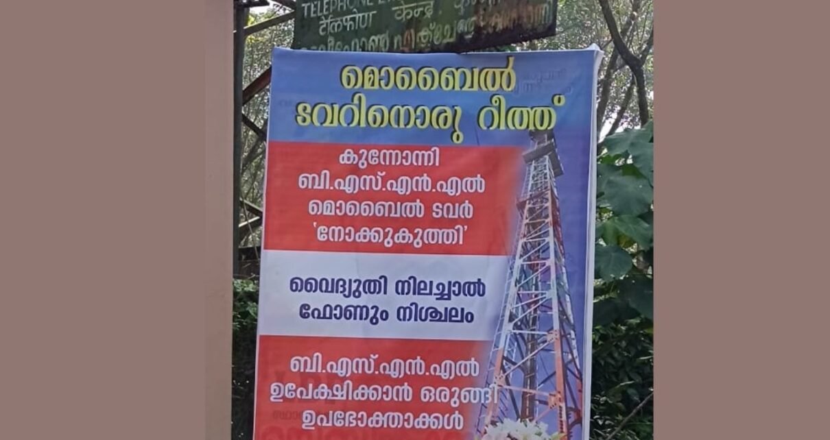 കുന്നോന്നിയില്‍ വൈദ്യുതി നിലച്ചാല്‍ ഫോണും നിശ്ചലം; പരാതി നല്കി മടുത്ത് ടവറില്‍ റീത്ത് വച്ച് ഉപഭോക്താക്കള്‍