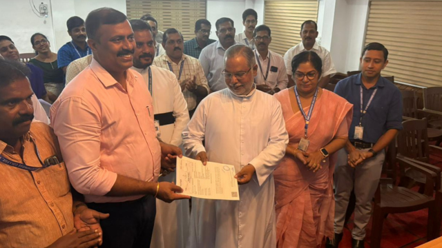 കോളേജ് മാനേജർ റവ. ഫാ ബർക്കുമാൻസ് കുന്നുംപുറത്തിന് മെഡ്സിറ്റി ഇന്റർനാഷ്നൽഅക്കാഡമി സി. ഒ. ഒ. പോപ്സൺ ആന്റണി കോഴ്സ് സംബന്ധിച്ച ധാരണാപത്രം കൈമാറി.