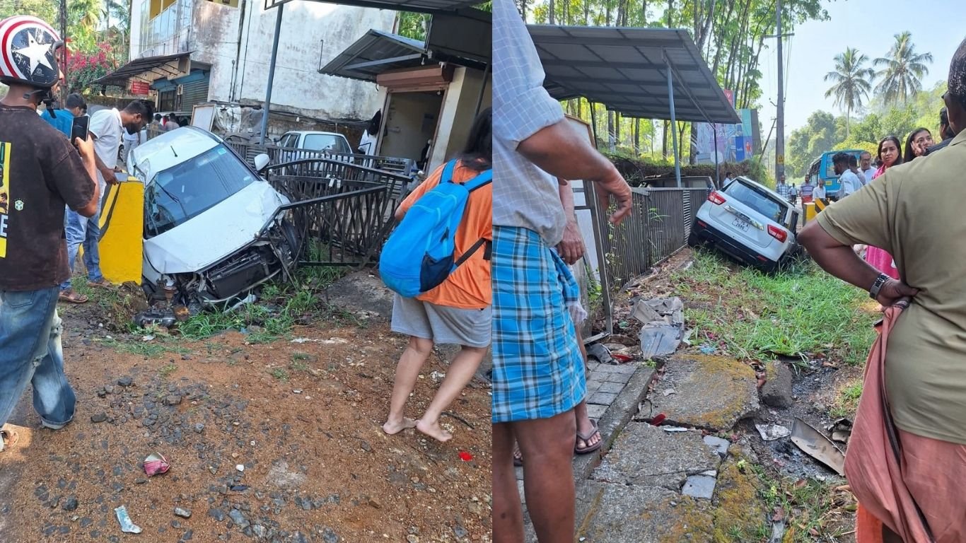 കാഞ്ഞിരപ്പള്ളി- ഈരാറ്റുപേട്ട റോഡിൽ നാലാം മൈലിൽ നിയന്ത്രണം വിട്ട കാർ റോഡരികിൽ നിർത്തിയിട്ടിരുന്ന മറ്റൊരു കാറിന് പിന്നിൽ ഇടിച്ച് അപകടം