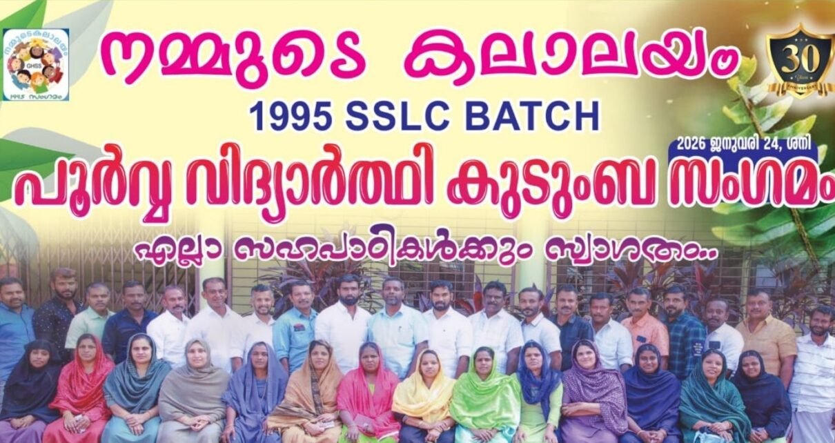 ഈരാറ്റുപേട്ട : ഈരാറ്റുപേട്ട തെക്കേക്കര ഗവ:ഹയർ സെക്കണ്ടറി സ്കൂളിലെ 1995 എസ്.എസ്.എൽ.സി. ബാച്ചിലെ വിദ്യാത്ഥികൾ. “ഭൂതകാലങ്ങളിൽ 2026 ” വിദ്യാത്ഥി കുടുംബസംഗമം (ശനിയാഴ്ച) 24/1/2026 രാവിലെ പത്ത് മണി മുതൽ സ്കൂൾ ഓഡിറ്റേറിയത്തിൽ വെച്ച് നടത്തപ്പെടും. കൂടുതൽ വിവരങ്ങൾക്ക് :974728286, 9847 842247