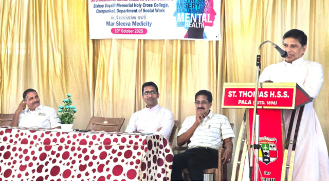 പാലാ : ബിഷപ്പ് വയലിൽ മെമ്മോറിയൽ ഹോളി ക്രോസ് കോളേജ്, സോഷ്യൽ വർക്ക് വിഭാഗത്തിന്റെ ആഭിമുഖ്യത്തിൽ ലോകമാനസികാരോഗ്യ ദിനത്തോട് അനുബന്ധിച്ചു “മൈൻഡ് യുവർ മൈൻഡ് – മാനസികാരോഗ്യ ബോധവത്കരണ പരിപാടി” പാലാ രൂപതയുടെ കീഴിലുള്ള എല്ലാ ഹയർ സെക്കന്ററി സ്കൂളുകളിലും സംഘടിപ്പിച്ചു. മാർ ശ്ലീവാ മെഡിസിറ്റിയിലെ സൈക്കോളജി വിഭാഗം കോളേജിലെ വിദ്യാർത്ഥികൾക്ക് പരിശീലനം നൽകി. പരിപാടിയുടെ ഉദ്ഘാടനം ഡോ. ബേബി സെബാസ്റ്റ്യൻ പ്രിൻസിപ്പൽ, ബി.വി.എം. ഹോളി ക്രോസ് കോളേജ്,ചേർപ്പുങ്കൽ പാല സെന്റ് തോമസ് ഹയർ സെക്കൻഡറി സ്കൂൾ Read More…