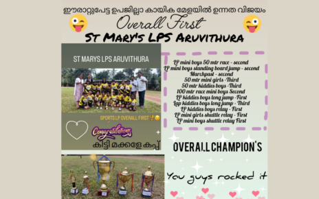 അരുവിത്തുറ: ഗംഭീരമായ ശിശുദിനാഘോഷ പരിപാടികളാണ് അരുവിത്തുറ സെന്റ് മേരീസ് എൽ.പി.സ്കൂൾ കുരുന്നുകൾക്കായി ഒരുക്കിയത്. വെള്ള വസ്ത്രം ധരിച്ചാണ് എല്ലാവരും തന്നെ സ്കൂളിൽ എത്തിയത്.