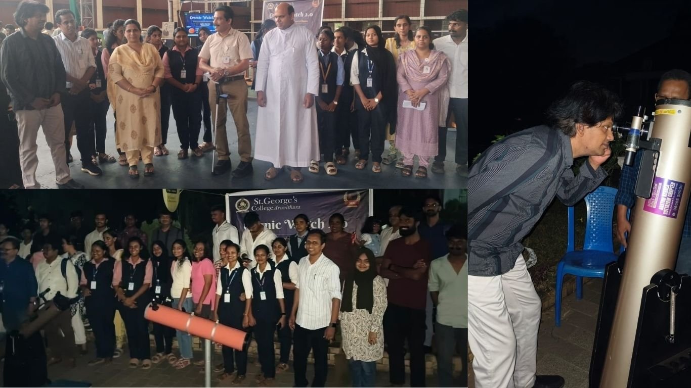 അരുവിത്തുറ സെൻ്റ് ജോർജസ് കോളേജ്, ഭൗതിക ശാസ്ത്ര ഗവേഷണ വിഭാഗവും ആസ്ട്രോ കേരള കോട്ടയം ചാപ്റ്ററും സംയുക്തമായി സ്കൂൾ വിദ്യാർത്ഥികൾക്കും പൊതുജനങ്ങൾക്കും വേണ്ടി ഒരുക്കിയ ആകാശ കാഴ്ചകൾ വിദ്യാർത്ഥികൾക്ക് നവ്യാനുഭൂതി പകർന്നു.