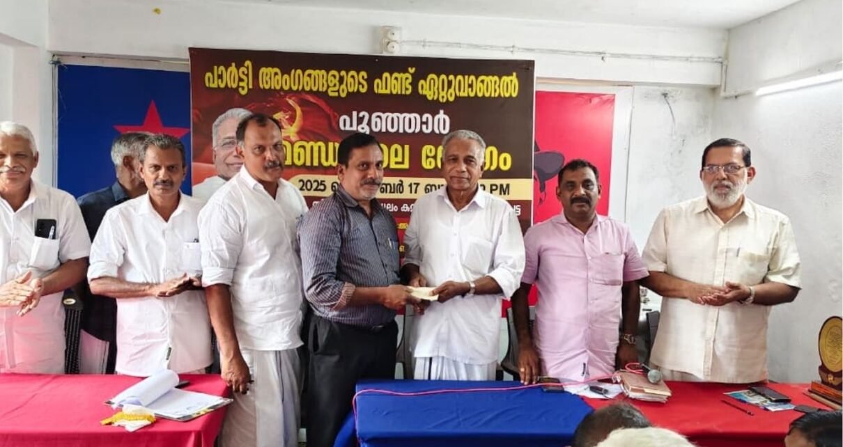 സിപിഐ പൂഞ്ഞാർ മണ്ഡലം കമ്മിറ്റിയുടെ ആഭിമുഖ്യത്തിൽ മണ്ഡലതല യോഗവും, പാർട്ടി അംഗങ്ങളുടെ ഫണ്ട് ഏറ്റുവാങ്ങലും നടത്തി