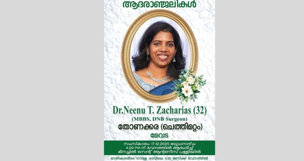 വീട്ടുകാർ അടുത്തുള്ള സ്വകാര്യ ആശുപത്രിയിൽ എത്തിച്ചെങ്കിലും മരണം സ്ഥിരീകരിക്കുകയായിരുന്നു. നാളെ രാവിലെ 10 മണിക്ക് കോട്ടയം മെഡിക്കൽ കോളേജിൽ പോസ്റ്റുമോർട്ടം നടക്കും. സംസ്കാരം ബുധനാഴ്ച (17/ 12/ 2025) 4 മണിക്ക് ഭവനത്തിൽ ആരംഭിച്ച് മീനച്ചിൽ സെൻറ് ആൻറണീസ് പള്ളിയിൽ.