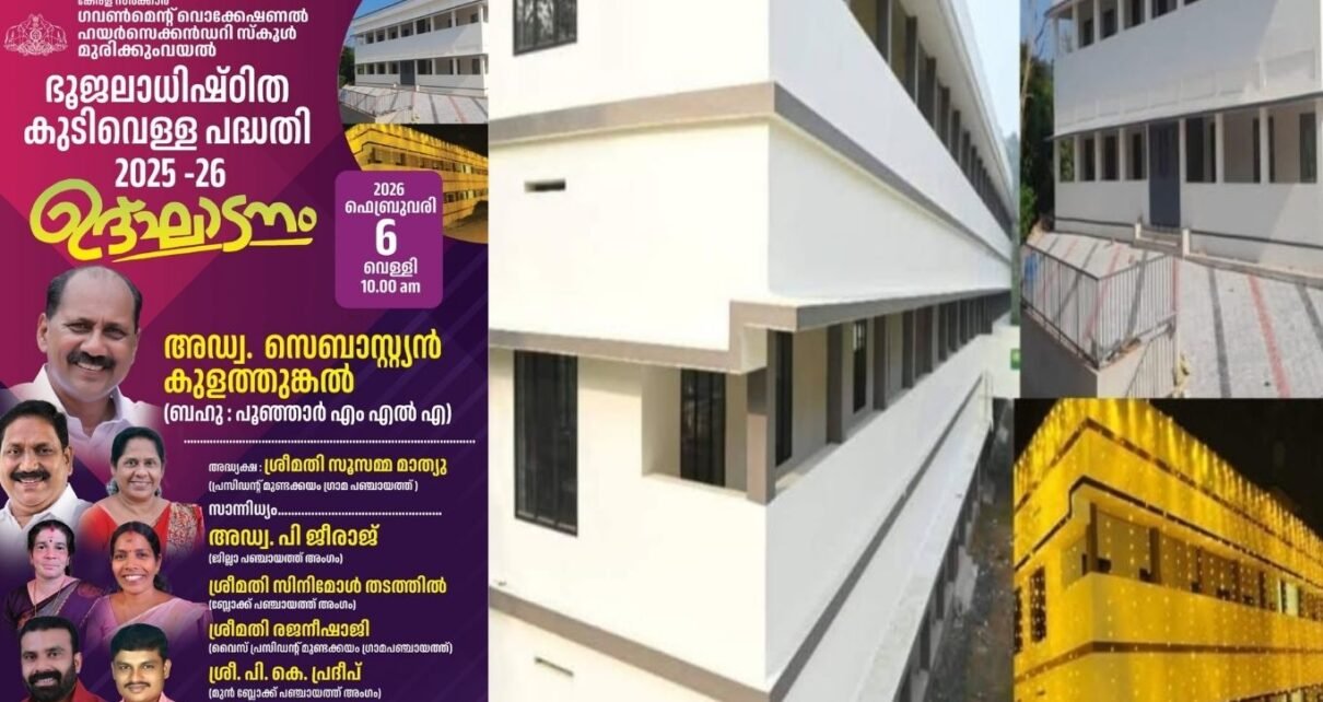 മുരിക്കുംവയൽ: ഗവൺമെൻറ് വൊക്കേഷണൽ ഹയർസെക്കൻഡറി സ്കൂളിൽ ഭൂജലാധിഷ്ഠിത കുടിവെള്ള പദ്ധതി 2025-26 ന്റെ ഉദ്ഘാടനം ബഹു. പൂഞ്ഞാർ എം എൽ എ അഡ്വക്കേറ്റ് സെബാസ്റ്റ്യൻ കുളത്തുങ്കൽ ഫെബ്രുവരി 6 ന് രാവിലെ 10 മണിയ്ക് ചടങ്ങിൽ സൂസമമ മാത്യൂ(പ്രസിഡൻ്റ്, മുണ്ടക്കയം ഗ്രാമ പഞ്ചായത്ത്) അധ്യക്ഷത വഹിക്കും അഡ്വ. പി ജിരാജ് (ജില്ലാ പഞ്ചായത്ത് അംഗം) പ്രഭാത ഭക്ഷണ വിതരണ ഉത്ഘാടനം നടത്തും.