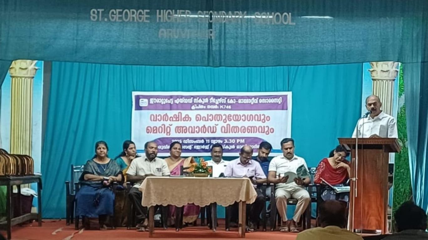 ഈരാറ്റുപേട്ട എയ്ഡഡ് സ്കൂൾ ടീച്ചേഴ്സ് കോപ്പറേറ്റീവ് സൊസൈറ്റിയുടെ 38 – മത് വാർഷിക പൊതുയോഗവും 2025 മാർച്ചിൽ നടന്ന ഹയർസെക്കൻഡറി എസ് എസ് എൽ സി പരീക്ഷകളിൽ ഉന്നത വിജയം കരസ്ഥമാക്കിയ കുട്ടികൾക്കുള്ള അവാർഡ് വിതരണം അരുവിത്തുറ സെൻറ് ജോർജ് ഹയർ സെക്കൻഡറി സ്കൂൾ ഓഡിറ്റോറിയത്തിൽ നടന്നു.