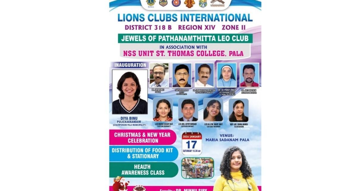 പാലാ: പാലാ സെൻ്റ്. തോമസ് കോളേജ് എൻഎസ്എസ് യൂണിറ്റും ജുവൽസ് ഓഫ് പത്തനംതിട്ട ലിയോ ക്ലബ്ബും സംയുക്തമായി പാലാ മരിയ സദൻ സന്ദർശനവും ന്യൂ ഇയർ ആഘോഷവും , ആരോഗ്യ ബോധവൽക്കരണ ക്ലാസും നിത്യോപയോഗ സാധനങ്ങളുടെ വിതരണവും ഇന്ന് നടത്തും.