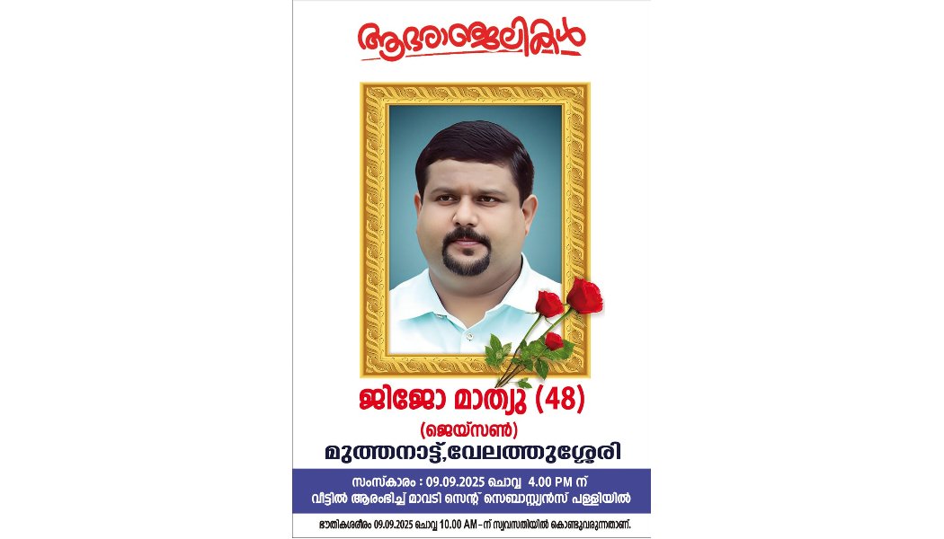 അമേരിക്കയിൽ നിര്യാതനായ മുൻ ദേശീയ കായിക താരം മുത്തനാട്ട് ജിജോ മാത്യുവിന്റെ സംസ്കാരം നാളെ