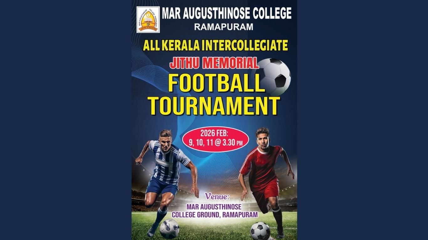 രാമപുരം: മാർ ആഗസ്തീനോസ് കോളേജിൻ്റെ ആഭിമുഖ്യത്തിൻ സംഘടിപ്പിക്കുന്ന 8 ആ മത് ജിത്തുമെമ്മോറിയൽ ഇന്റർ കോളേജിയറ്റ് ഫുട്ബോൾ ടൂർണമെന്റ് ഫെബ്രുവരി 9 മുതൽ കോളേജ് ഗ്രൗണ്ടിൽ വച്ച് നടത്തപ്പെടുന്നു.