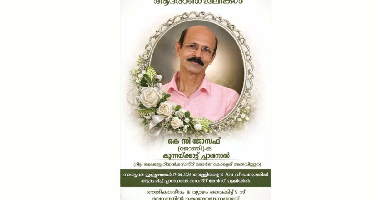 കോരുത്തോട് : ആദ്യകാല റേഷൻ വ്യാപാരിയും കുടിയേറ്റകർഷനുമായിരുന്ന പുളിന്താനത്ത് പി. സി. ജോസഫ് (കൊച്ചേട്ടൻ 94) നിര്യാതനായി. സംസ്കാരം നാളെ (30.05.2025) രാവിലെ10 മണിക്ക് കോരുത്തോട് സെന്റ് ജോർജ് പള്ളിയിൽ. മൃതദേഹം ഇന്ന് (29.05.2025) വൈകുന്നേരം 4 മണിക്ക് ഭവനത്തിൽ കൊണ്ടുവരും. ഭാര്യ :പരേതയായ റോസമ്മ മറ്റപ്പള്ളിൽ കുടുംബാംഗമാണ്. മക്കൾ : മോളി, ആലിസ്, റോസമ്മ, അപ്പച്ചൻ( എൽ.ഐ.സി. ഏജന്റ് മുണ്ടക്കയം),മേരിക്കുട്ടി (റിട്ട. അദ്ധ്യാപിക ഗവ. എച്ച്. എസ് കുഴിമാവ്), കുട്ടപ്പായി (തോമസ്), സണ്ണി (പത്രം ഏജന്റ് Read More…