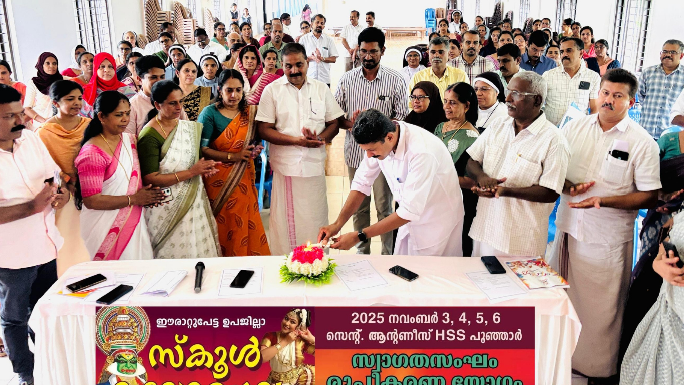 പൂഞ്ഞാർ : പൂഞ്ഞാർ സെന്റ്. ആന്റണീസ് ഹയർ സെക്കന്ററി സ്കൂളിൽ നടക്കുന്ന ഈ വർഷത്തെ ഈരാറ്റുപേട്ട ഉപജില്ലാ കലോത്സവത്തിന്റെ സ്വാഗതസംഘ രൂപീകരണ യോഗം നടന്നു. ഉപജില്ലാ വിദ്യാഭ്യാസ ഓഫീസർ ഷംല ബീവി അദ്ധ്യക്ഷത വഹിച്ച സമ്മേളനം പൂഞ്ഞാർ തെക്കേക്കര ഗ്രാമപഞ്ചായത്ത് പ്രസിഡന്റ് ജോർജ് മാത്യു അത്ത്യാലിൽ ഉദ്ഘാടനം ചെയ്തു.