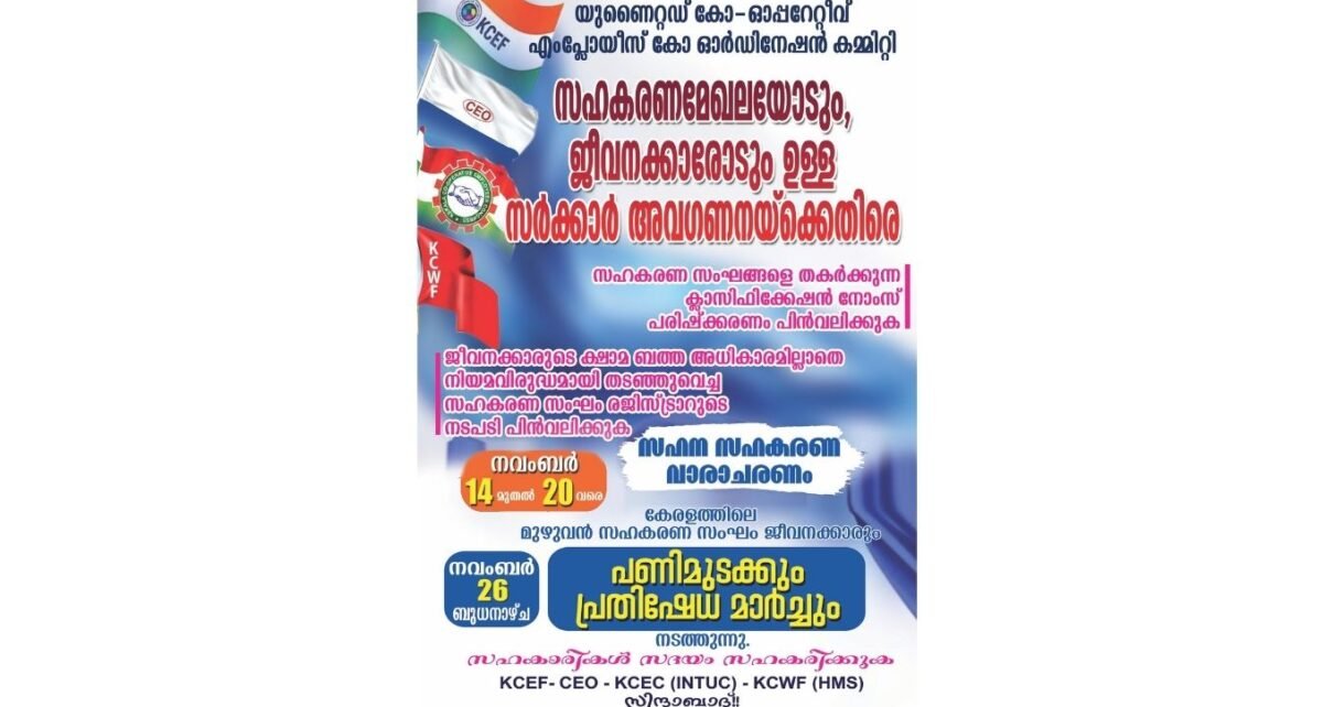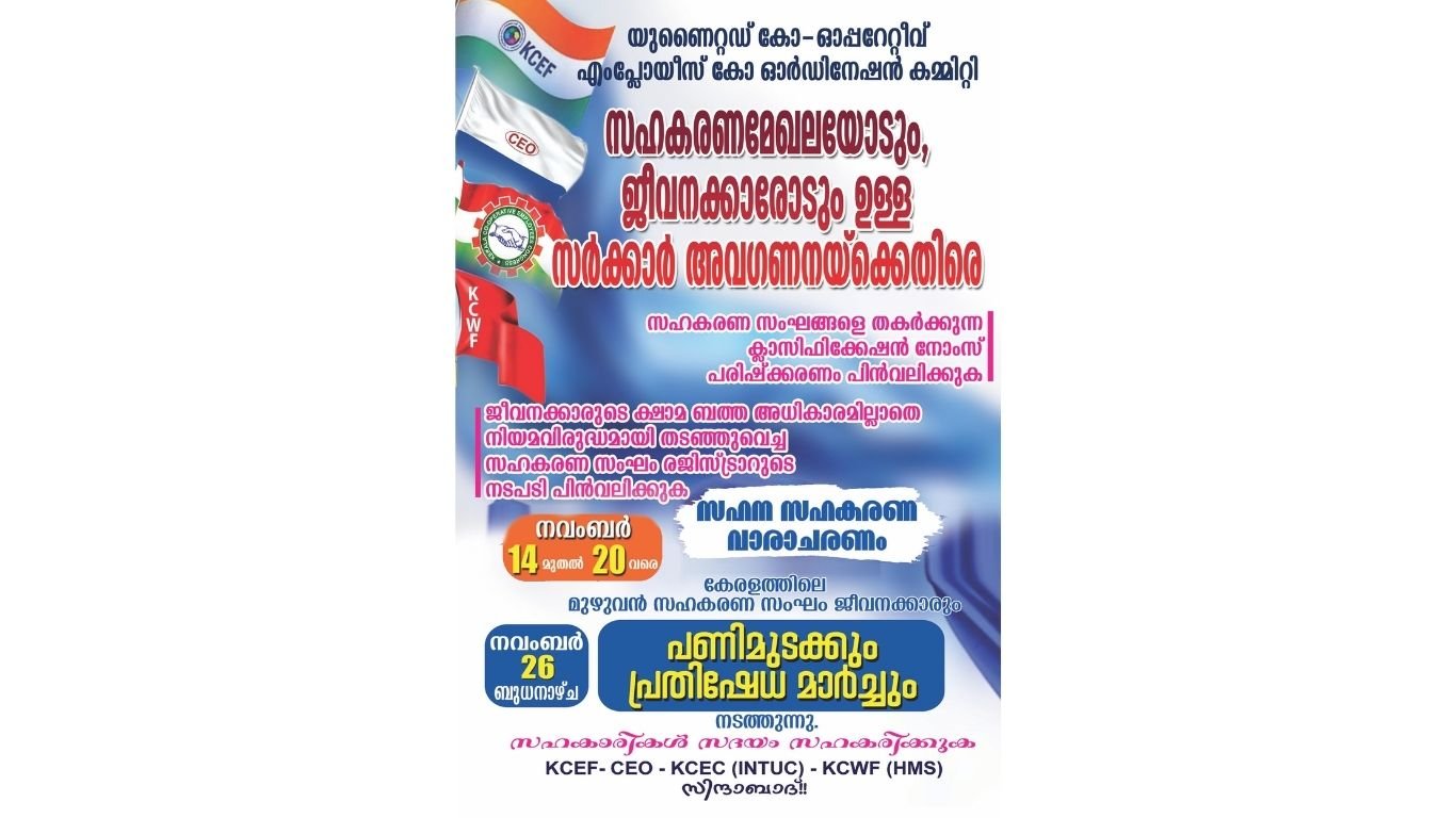 സഹകരണ ജീവനക്കാരുടെ വിവിധ സംഘടനകളുടെ നേതൃത്വത്തിലുള്ള യുണൈറ്റഡ് കോ-ഓപ്പറേറ്റീവ് എംപ്ലോയീസ് കോ-ഓർഡിനേഷൻ കമ്മിറ്റി സംയുക്തമായാണ് സമരത്തിന് ആഹ്വാനം ചെയ്തിരിക്കുന്നത്.
