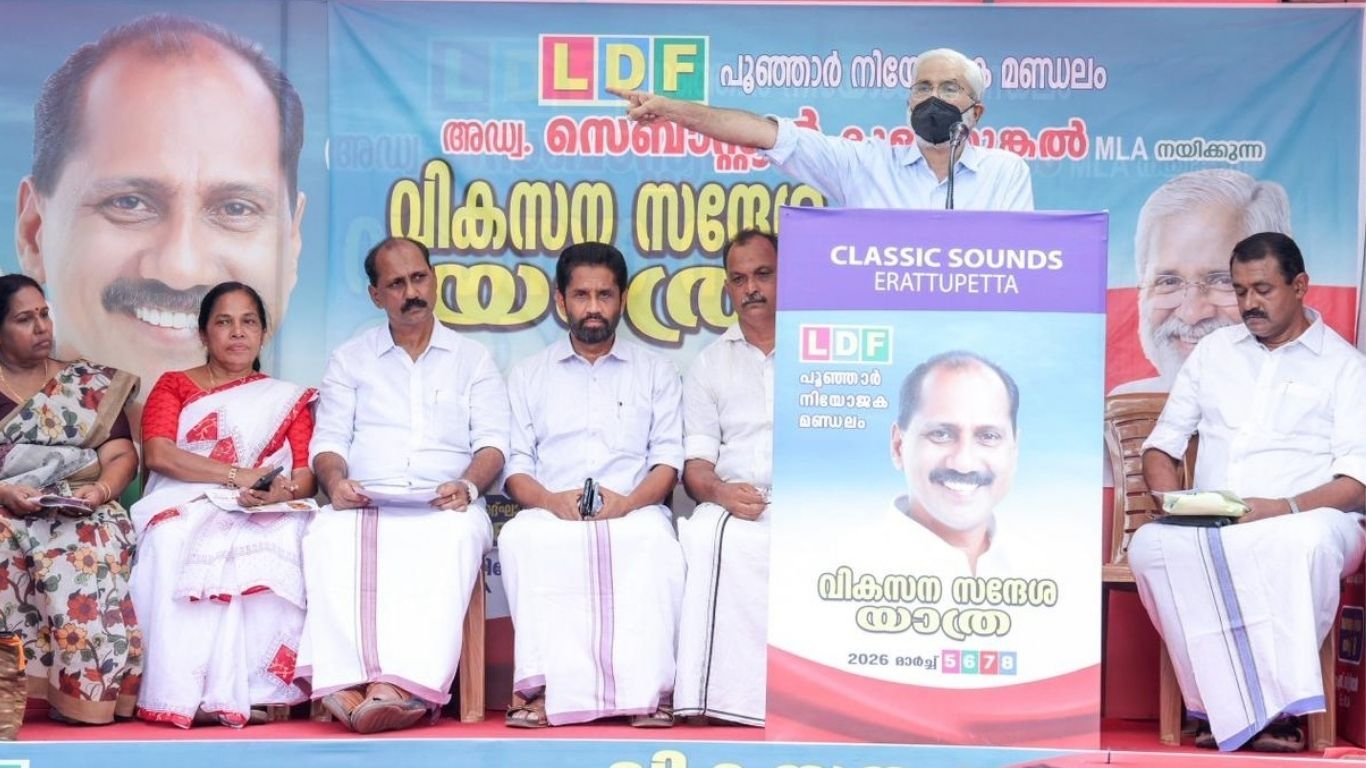 പൂഞ്ഞാര്‍ എം.എല്‍.എ. അഡ്വ. സെബാസ്റ്റ്യന്‍ കുളത്തുങ്കല്‍ നയിക്കുന്ന എല്‍.ഡി.എഫ്. വികസനസന്ദേശയാത്ര ഈരാറ്റുപേട്ടയില്‍ ഉദ്ഘാടനം ചെയ്തുകൊണ്ട് സംസാരിക്കുകയായിരുന്നു അദ്ദേഹം.