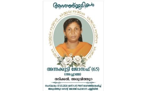 പൂഞ്ഞാർ: കടലാടിമറ്റം മറ്റത്തിൽ എം.ആർ ബാലകൃഷ്ണ പിള്ള (90) (റിട്ട: ആരോഗ്യ വകുപ്പ്) നിര്യാതനായി. സംസ്കാരം നാളെ (20-7-24, ശനി) 2 ന് വീട്ടൂവളപ്പിൽ. ഭാര്യ: ശാരദാമ്മ (അമ്മിണി) ചേർത്തല പാണാവള്ളി പത്മാലയം കുടുംബാംഗം.