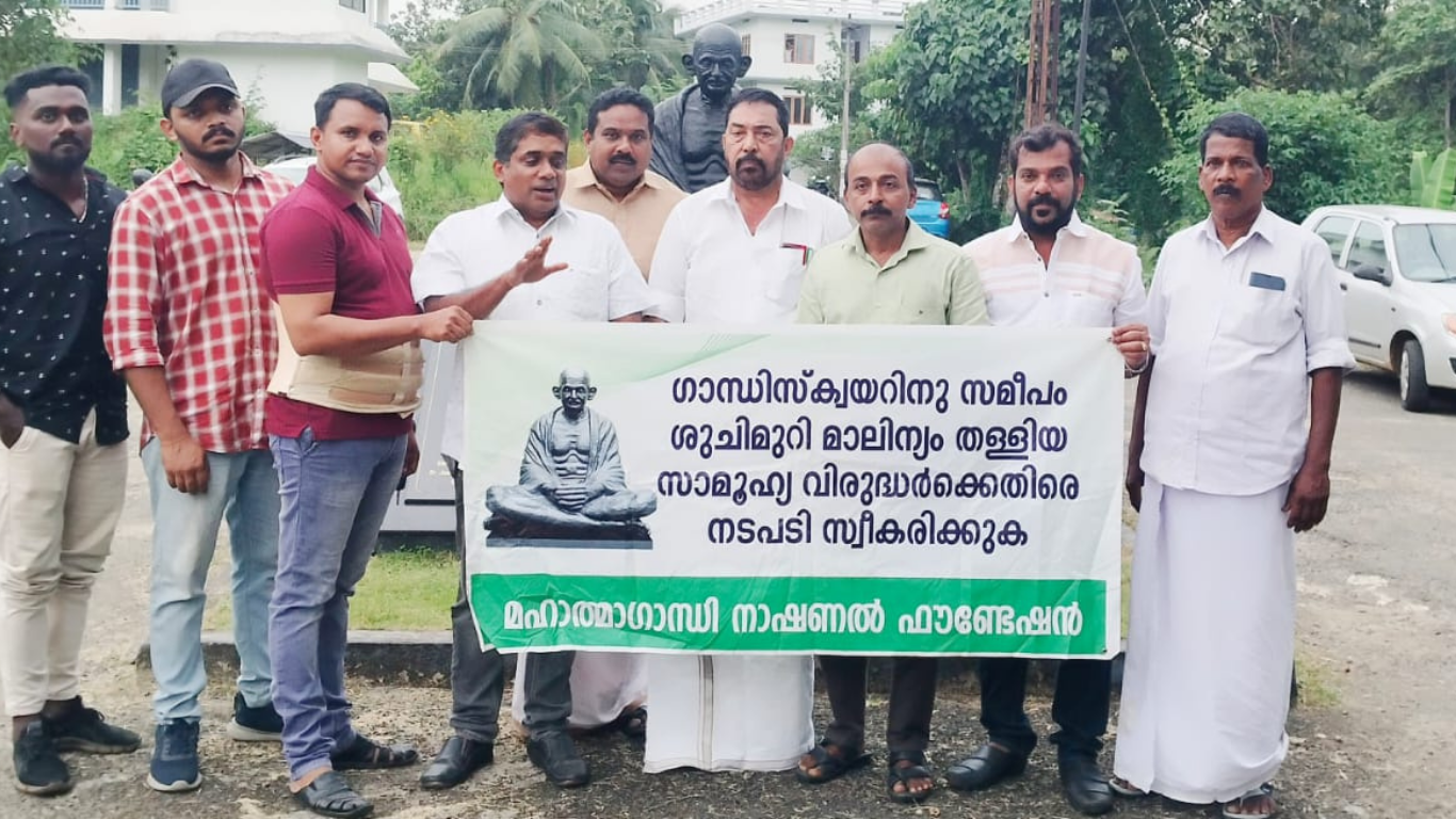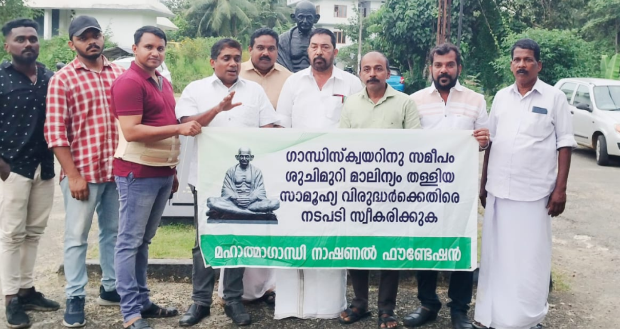 പാലാ: മൂന്നാനി ഗാന്ധി പ്രതിമയ്ക്കും കവീക്കുന്ന് കുടിവെള്ള പദ്ധതിയുടെ കുളം സ്ഥിതി ചെയ്യുന്നതിനും കോടതി സമുച്ചയത്തിനും സമീപം സാമൂഹ്യ വിരുദ്ധർ ശുചിമുറി മാലിന്യം തള്ളിയതിനെതിരെ മഹാത്മാഗാന്ധി നാഷണൽ ഫൗണ്ടേഷൻ ഗാന്ധി സ്ക്വയറിൽ പ്രതിഷേധ ധർണ്ണ നടത്തി. ധർണ്ണ മഹാത്മാഗാന്ധി നാഷണൽ ഫൗണ്ടേഷൻ ചെയർമാൻ എബി ജെ ജോസ് ഉദ്ഘാടനം ചെയ്തു.