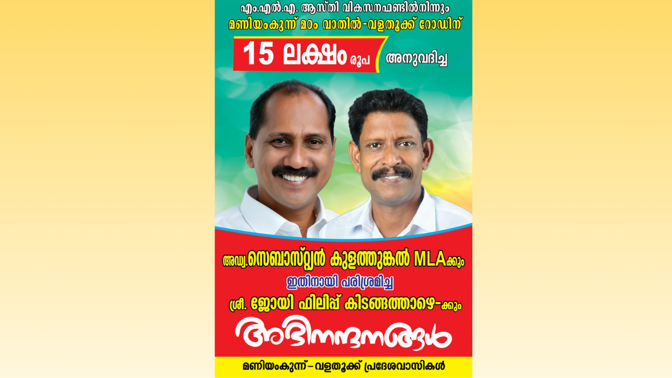 മണിയംകുന്ന് മഠം വാതിൽ – വളത്തൂക്ക് റോഡിന് പൂഞ്ഞാർ എംഎൽഎയുടെ ആസ്തി വികസന ഫണ്ടിൽ നിന്നും 15 ലക്ഷം രൂപ അനുവദിച്ചു. മണിയംകുന്ന് പള്ളി വികാരി ഫാ. ജോർജ് തെരുവിലിന്റെയും, മഠം സുപ്പീരിയറിന്റെയും, സ്കൂൾ എച്ച് എമ്മിനെയും, പൊതുപ്രവർത്തകൻ ശ്രീ. ജോയ് കിടങ്ങത്താഴയുടെയും, നാട്ടുകാരുടെയും നേതൃത്വത്തിൽ പൂഞ്ഞാർ എംഎൽഎ അഡ്വ.സെബാസ്റ്റ്യൻ കുളത്തുങ്കലിന് നൽകിയ നിവേദനത്തിന്റെ ഫലമായിട്ടാണ് പൂഞ്ഞാർ പഞ്ചായത്തിന്റെ ഉടമസ്ഥതയിലുള്ളതും പാലാ രൂപതയിലെ കബറിട തീർഥാടന പാതയിലെ രണ്ടാം സ്റ്റേഷനായ മണിയംകുന്നിന് പ്രത്യേക താല്പര്യമെടുത്ത് എംഎൽഎ തുക അനുവദിച്ചത്.