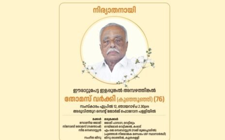പാറമ്പുഴ: തെക്കെകുറത്തിയാട്ട് പരേതനായ റ്റി.വി. തോമസിന്റെ ഭാര്യ മേരി തോമസ് (81) നിര്യാതയായി. സംസ്കാരം നാളെ (12/3/2024) വൈകിട്ട് 4.30 ന് പാറമ്പുഴ ബേത്ലഹേം ദൈവാലയത്തിൽ. പരേത തെള്ളകം പുത്തൻപുരയ്ക്കൽ കുടുംബാംഗമാണ്.