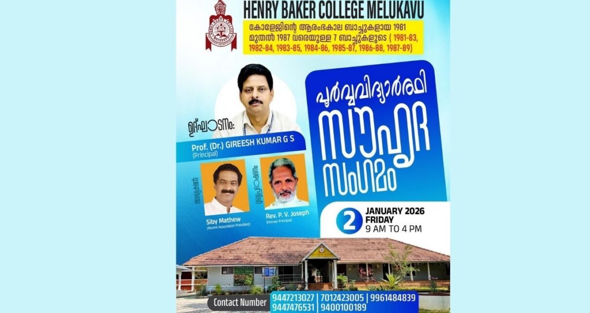 പരിപാടിയുടെ ഉദ്ഘാടനം 2026 ജനുവരി മാസം രണ്ടാം തീയതി വെള്ളിയാഴ്ച രാവിലെ ഹെൻട്രി ബേക്കർ കോളേജ് ഓഡിറ്റോറിയത്തിൽ അലുമിനി അസോസിയേഷൻ പ്രസിഡന്റ് സിബി മാത്യു പ്ലാത്തോട്ടത്തിന്റെ അദ്ധ്യക്ഷതയിൽ കോളേജ് പ്രിൻസിപ്പൽ പ്രൊഫ. ഡോ. ഗിരീഷ് കുമാർ G.S നിർവ്വഹിയ്ക്കും. മുൻ പ്രിൻസിപ്പൽ Rev. പി.വി.ജോസഫ് മുഖ്യപ്രഭാഷണം നടത്തും. Contact Number 9447213027.