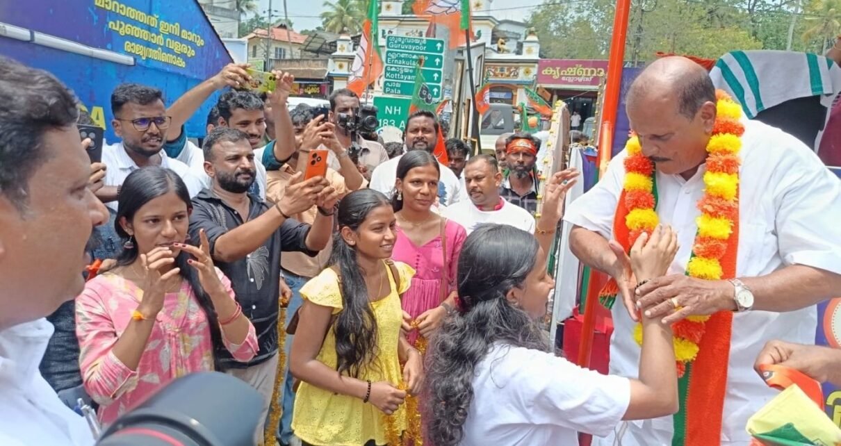 പര്യടന പരിപാടികൾക്ക് മാറ്റ് കൂട്ടികൊണ്ട് യുവമോർച്ച യുടെ നേതൃത്വത്തിൽ എരുമേലി ടൗണിൽ നൂറ് കണക്കിന് പ്രവർത്തകരുടെ നേതൃത്വത്തിൽ സംഘടിപ്പിച്ച സ്വീകരണം ഏറെ ശ്രദ്ധേയമായി.ഇതോടെ രണ്ടാഴ്ച്ചക്കാലമായി പൂഞ്ഞാറിലെ എല്ലാ പഞ്ചായത്തുകളിലും,മുൻസിപ്പാലിറ്റിയിലുമായി നടന്ന വാഹന പര്യടനത്തിന് ഇതോടെ സമാപനമായി.