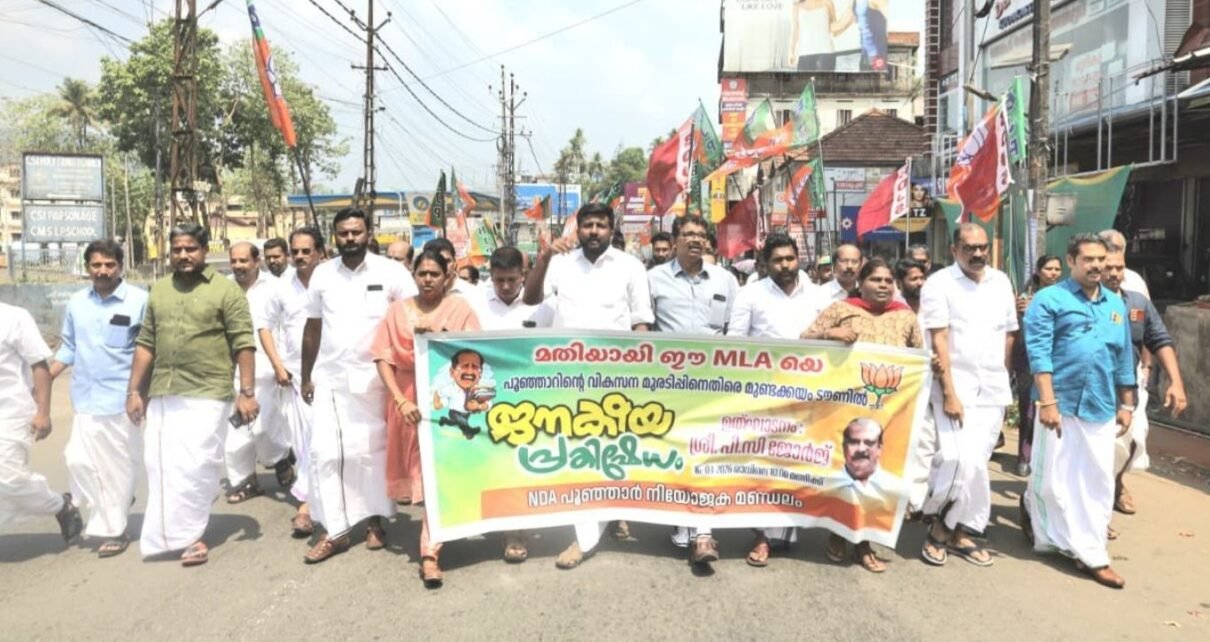 മുണ്ടക്കയം: എൻഡിഎ പൂഞ്ഞാർ നിയോജക മണ്ഡലം കമ്മിറ്റിയുടെ നേതൃതത്തിൽ പൂഞ്ഞാറിലെയും കേരളത്തിലെയും എൽഡിഎഫ് ദുർഭരണത്തിനെതിരെ സംഘടിപ്പിച്ച പ്രതിഷേധ മാർച്ച് ഉദ്ഘാടനം ചെയ്തു കൊണ്ട് പറയുകയായിരുന്നു അദ്ദേഹം. മുണ്ടക്കയം വൈഎംസിഎ ഹാളിന് സമീപത്ത് നിന്ന് ആരംഭിച്ച മാർച്ച് ടൗൺ വില്ലേജാഫീസിലാണ് സമാപിച്ചത്.