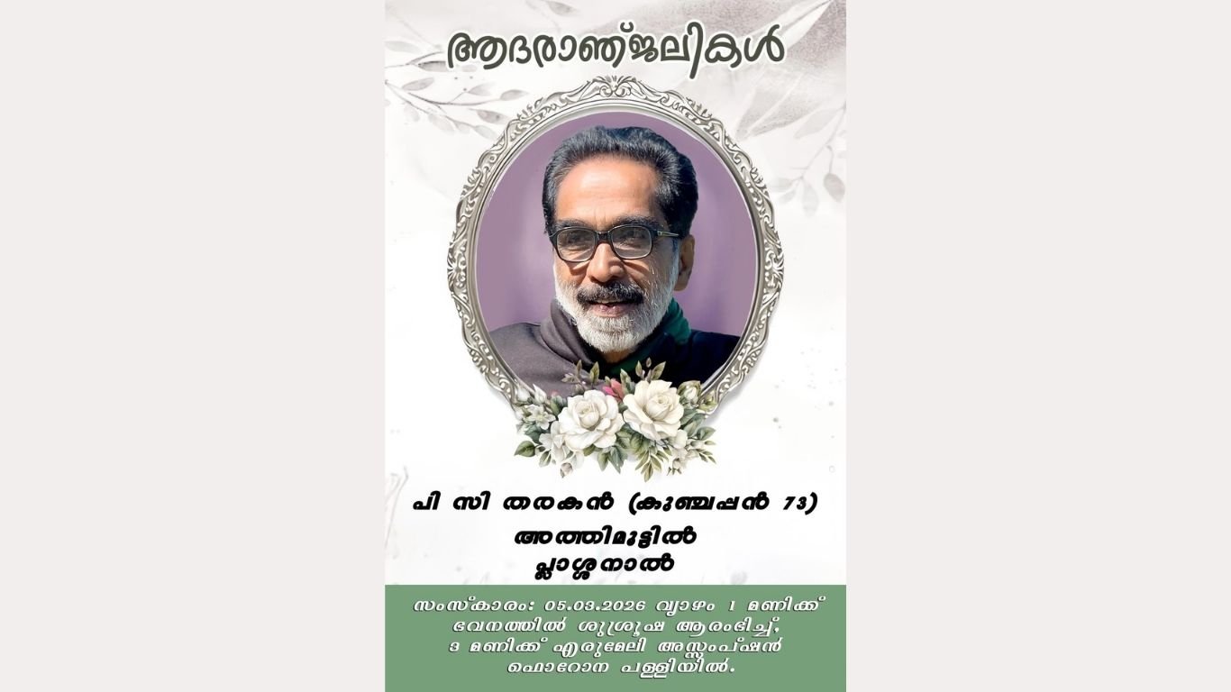 ഇളംതോട്ടം:പാലാ രൂപതാംഗം ഫാ.ഇമ്മാനുവൽ വരിക്കമാക്കൽ (77) അന്തരിച്ചു. മൃതദേഹം ഇന്ന് വൈകിട്ട് 5ന് സഹോദരൻ മാർട്ടിൻ വരിക്കമാക്കലിന്റെ മൂലമറ്റത്തെ വസതിയിൽ കൊണ്ടുവരും. നാളെ 10ന് ഇളംതോട്ടം ഐഎംഎ ഹാളിലേക്ക് കൊണ്ടു പോകും. സംസ്കാരം 1.30ന് ഐഎംഎ ഹാളിൽ ശുശ്രൂഷയ്ക്കു ശേഷം ഇളംതോട്ടം സെന്റ് ആന്റണി ദി ആബട്ട് പള്ളിയിൽ. മൂലമറ്റം, ഇലപ്പള്ളി, പയസ്മൗണ്ട്, കാക്കൂർ, കാക്കൊമ്പ്, അറക്കുളം പഴയ പള്ളി, വെള്ളിയാമറ്റം എന്നീ പള്ളികളിലും കല്യാൺ രൂപതയിൽ 10 വർഷവും സേവനം അനുഷ്ഠിച്ചിട്ടുണ്ട്. വരിക്കമാക്കൽ പരേതനായ കുര്യന്റെ Read More…