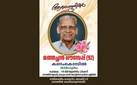തലനാട് : പാണ്ടൻ കല്ലുങ്കൽ പി.എസ് സി ബി (54) നിര്യാതനായി ഭാര്യ ജയ ( ടീച്ചർ, ഗവ: എൻ.പി എസ് തലനാട് , മാവടികുളത്തുങ്കൽ കുടുംബാഗം).