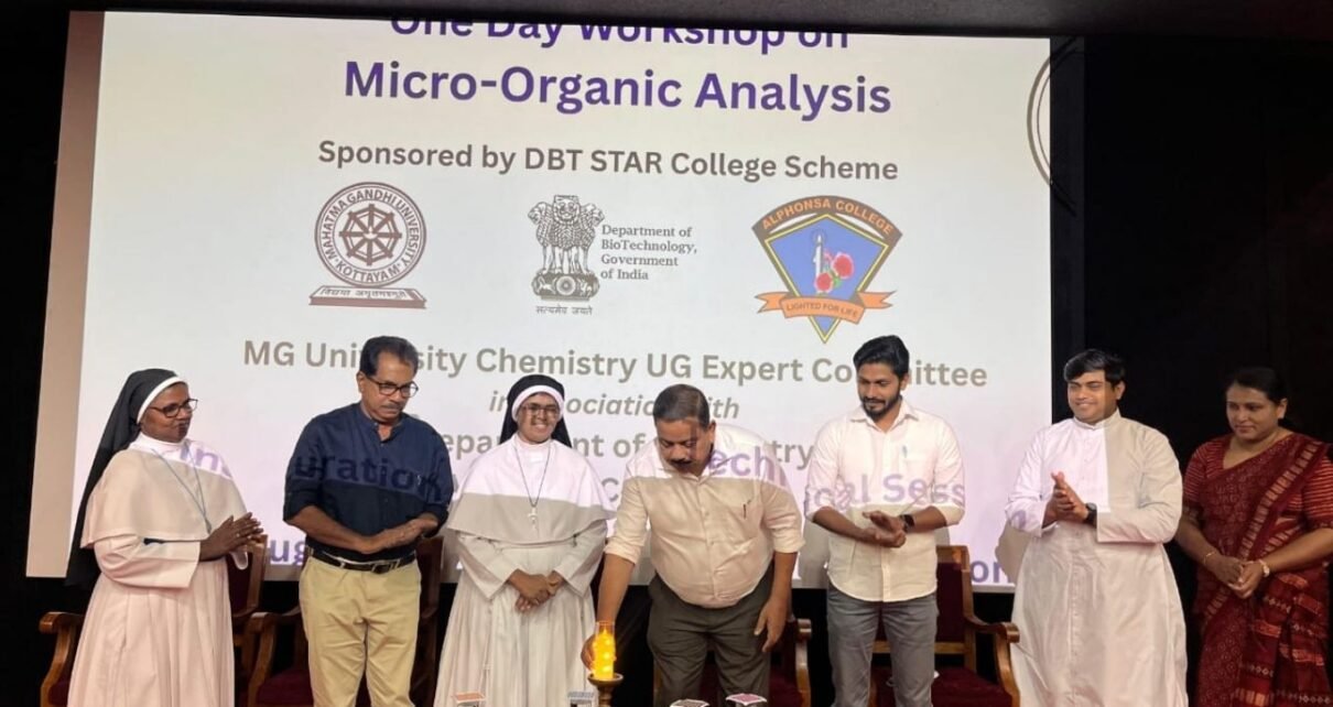 പാലാ: അൽഫോൻസ കോളേജ് DBT-STAR COLLEGE- സ്കീമിന്റെ ആഭിമുഖ്യത്തിൽ, കെമിസ്ട്രി വിഭാഗവും, M. G. University Chemistry UG Expert കമ്മിറ്റിയും ചേർന്ന് ‘Micro-Organic Analysis’ എന്ന വിഷയത്തിൽ ഏകദിന ശില്പശാല സംഘടിപ്പിച്ചു.