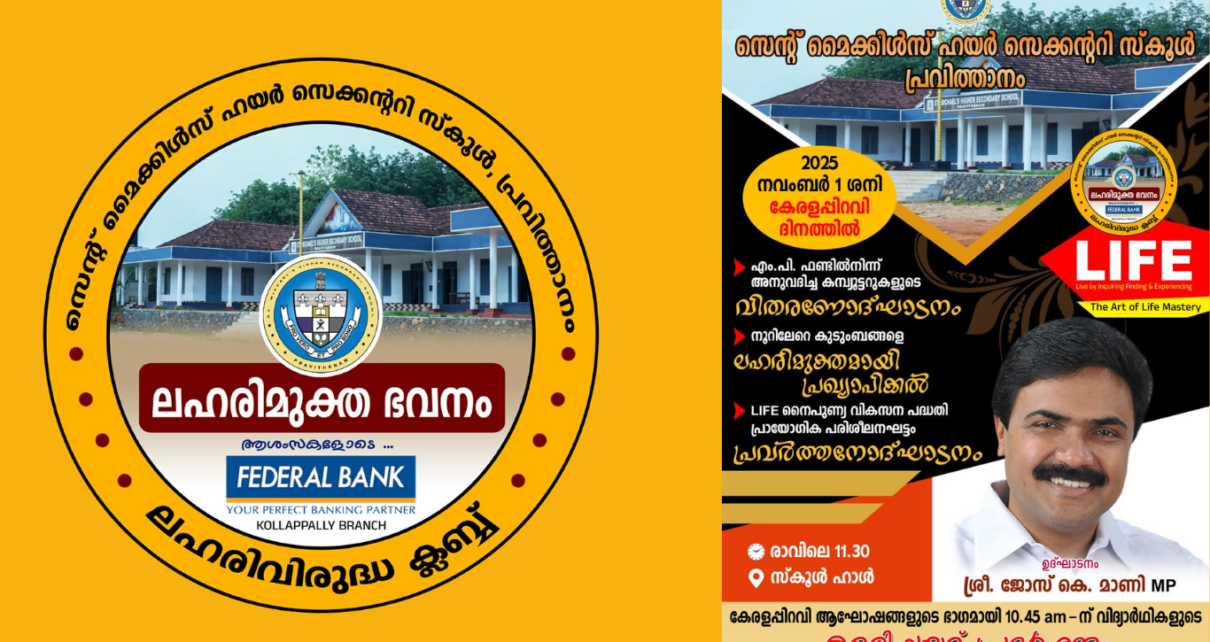 ലഹരി മുക്ത കുടുംബങ്ങളുടെ പ്രഖ്യാപനം നവംബർ ഒന്ന് ശനിയാഴ്ച രാവിലെ 11.30 ന് ജോസ് കെ. മാണി എം. പി. നിർവ്വഹിക്കും. സ്കൂൾ മാനേജർ വെരി. റവ. ഫാ. ജോർജ് വേളൂപ്പറമ്പിൽ അധ്യക്ഷത വഹിക്കും.
