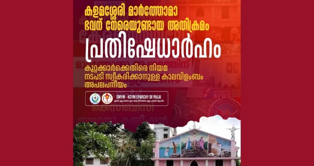 പാലാ : കളമശ്ശേരി മാർത്തോമാ ഭവന് നേരെയുണ്ടായ അതിക്രമം പ്രതിഷേധാർഹമെന്നും, കുറ്റക്കാർക്കെതിരെ നിയമ നടപടി സ്വീകരിക്കാനുള്ള കാലവിളംബം അപലപനീയമെന്നും പാലാ രൂപത യുവജനപ്രസ്ഥാനം എസ്എംവൈഎം പാലാ രൂപത.