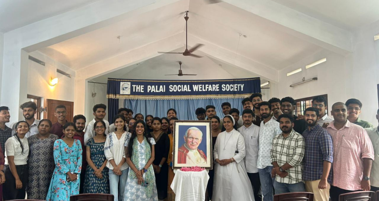 പാലാ ശാലോം പാസ്റ്ററൽ സെൻ്ററിൽ നടന്ന അനുസ്മരണത്തിൽ വി. ജോൺപോൾ രണ്ടാമന്റെ ഛായാചിത്രത്തിനു മുൻപിൽ യുവജനങ്ങൾ പൂക്കൾ അർപ്പിച്ചു.
