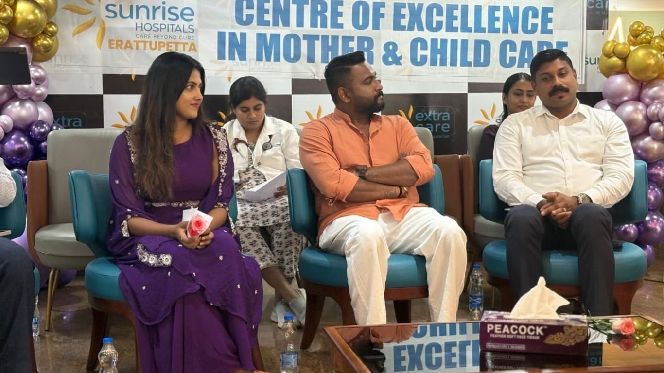 ഈരാറ്റുപേട്ട : സമഗ്രഹ മാതൃ ശിശു പരിചരണ വിഭാഗത്തിന് തുടക്കം കുറിച്ച് കൊണ്ട് ഈരാറ്റുപേട്ട സൺറൈസ് ഹോസ്പിറ്റൽ. സൺറൈസ് ഗ്രൂപ്പ് ഓഫ് ഹോസ്പിറ്റൽസിന്റെ ക്ലസ്റ്റർ C E O ശ്രീ. പ്രകാശ് മാത്യുവിന്റെ അധ്യക്ഷധയിൽ കൂടിയ ഔദ്യോഗിക ചടങ്ങിൽ, പ്രശസ്ത സിനിമ താരവും ഇൻസ്റ്റാഗ്രാം ഇൻഫ്ലുൻസറുമായ ശ്രീമതി ശ്രീവിദ്യ മുല്ലച്ചേരിയും ശ്രീ. രാഹുൽ രാമചന്ദ്രനും തിരി തെളിയിച്ച് ഉദ്ഘാടനം നിർവ്വഹിച്ചു.