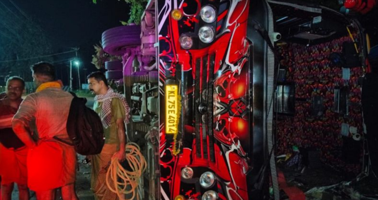 ചീങ്കല്ലയിൽ പള്ളിക്ക് സമീപത്താണ് അപകടം ഉണ്ടായത്. തിരുവനന്തപുരത്ത് നിന്ന് ഇരിട്ടിയിലേക്ക് പോകുകയായിരുന്ന ബസാണ് അപകടത്തിൽപ്പെട്ടത്. പുലർച്ചെ 2 മണിയോട് കൂടിയാണ് അപകടം ഉണ്ടായത്.