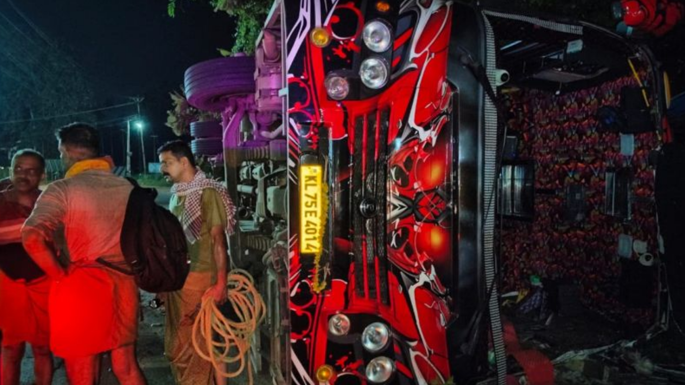 ചീങ്കല്ലയിൽ പള്ളിക്ക് സമീപത്താണ് അപകടം ഉണ്ടായത്. തിരുവനന്തപുരത്ത് നിന്ന് ഇരിട്ടിയിലേക്ക് പോകുകയായിരുന്ന ബസാണ് അപകടത്തിൽപ്പെട്ടത്. പുലർച്ചെ 2 മണിയോട് കൂടിയാണ് അപകടം ഉണ്ടായത്.