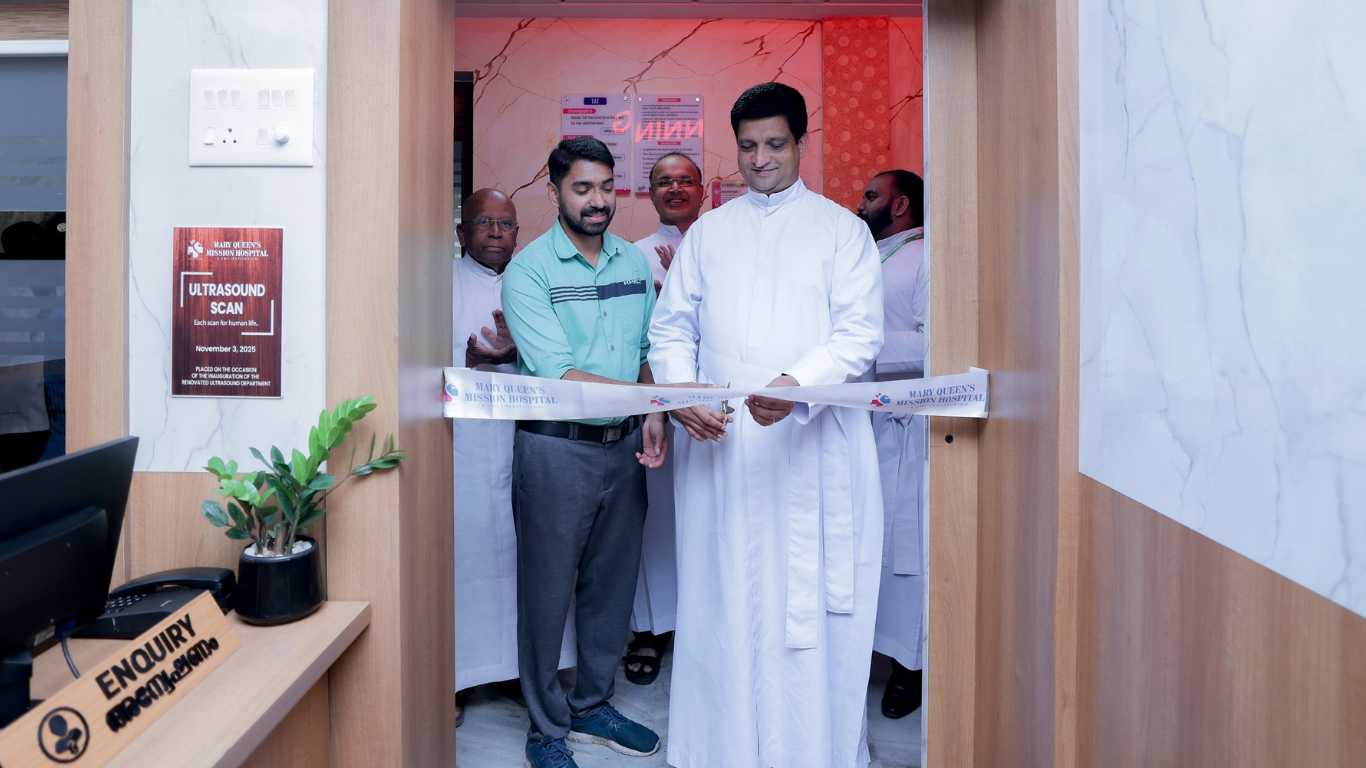 കാഞ്ഞിരപ്പളളി മേരീക്വീൻസ് മിഷൻ ആശുപത്രിയിൽ അത്യാധുനിക സൗകര്യങ്ങളോടെ നവീകരിച്ച അൾട്രാ സൗണ്ട് സ്കാനിംഗ് വിഭാഗത്തിന്റെ ഉദ്ഘാടനം ആശുപത്രി ഡയറക്ടറും, സി.എം.ഐ വികർ പ്രൊവിൻഷ്യലുമായ ഫാ. സന്തോഷ് മാത്തൻകുന്നേൽ സി.എം.ഐ, റേഡിയോളോജിസ്റ്റ് ഡോ. ജെയ്സൺ തോമസ് എന്നിവർ ചേർന്ന് നിർവ്വഹിക്കുന്നു.